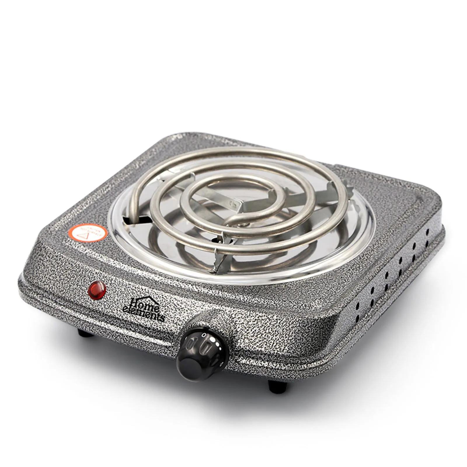 Estufa eléctrica 1 puesto con diseño compacto y materiales livianos, para llevar donde necesites sin ocupar espacio. La estufa eléctrica cuenta con 5 niveles de temperatura que alcanza el calor en poco tiempo: 1 Facilita preparar alimentos delicados a fuego bajo. 2 Prepara a fuego bajo cantidades grandes. 3 Para sellar carne, pollo, pescado. 4 Cocinar a fuego término medio. 5 Cocinar alimentos a fuego alto y rápido. Luz indicadora de encendido y apagado. Control automático con termostato que permite el ahorro en el consumo de energía. Potencia: Gracias a los 1.000 watts de potencia, se pueden realizar preparaciones a fuego bajo, medio o alto. Parrilla Calefactora: Cuenta con parrilla calefactora de 3 anillos y 14 cm de diámetro, que permite mayor uniformidad de la temperatura al preparar los alimentos. Protección sobrecalentamiento: No más preocupación por el deterioro de manteles y superficies. Disipador de calor: Además gracias a su disipador de calor, orificios laterales, se evita sobrecalentamiento y daño en los componentes eléctricos.